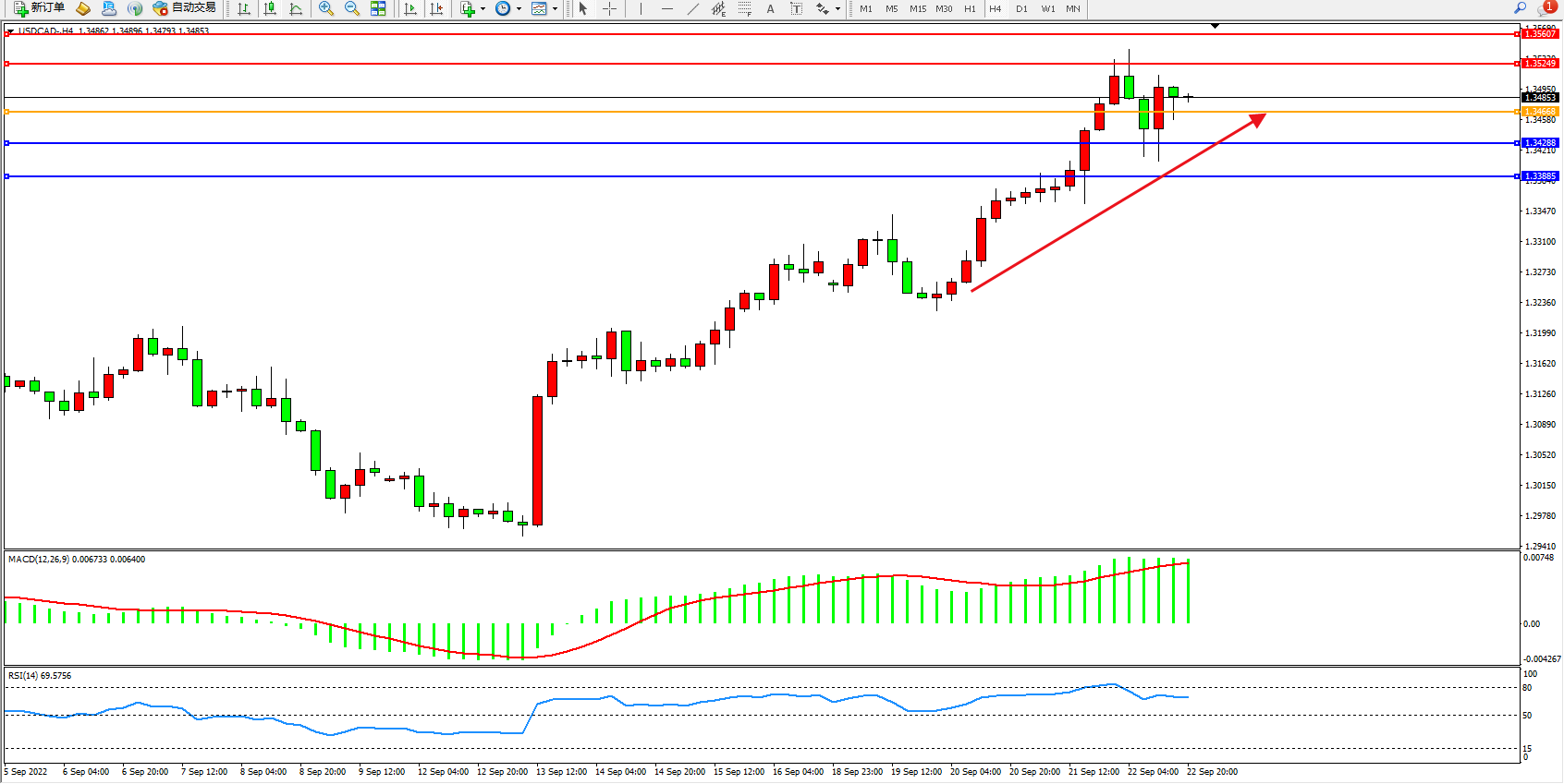 交易策略:1.34668上方看涨,目标1.35249、1.35607