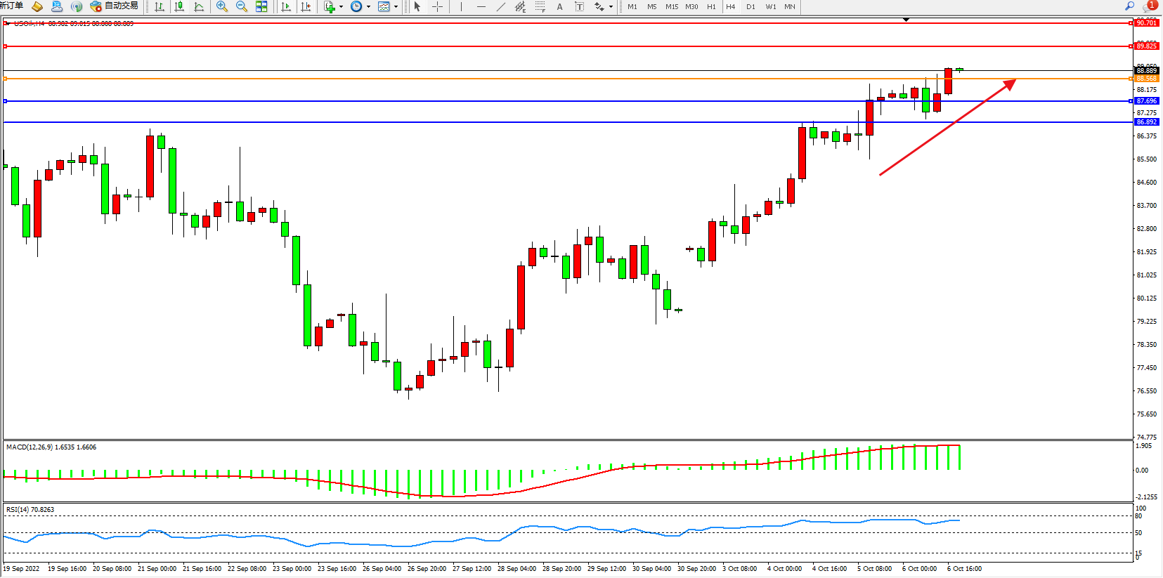 原油维持88.889附近震荡,国际油价延续过去三个交易日连涨势头,因石油输出国组织及其合作伙伴(OPEC+)同意进一步收紧全球供应,并达成协议减产200万桶/日(相当于全球供应的2%)。这是自2020年以来该集团最大规模减产。