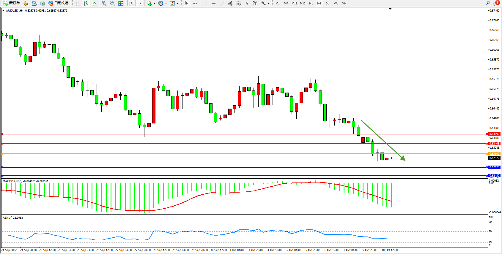 澳元兑美元维持0.62972附近震荡,美联储依然鹰派,全球经济衰退的风险上升,市场不相信风险资产市场已经充分反映了这一点。鉴于澳元的风险敏感性/顺周期性以及与全球经济增长高度相关,这对澳元是一个持续的威胁。
