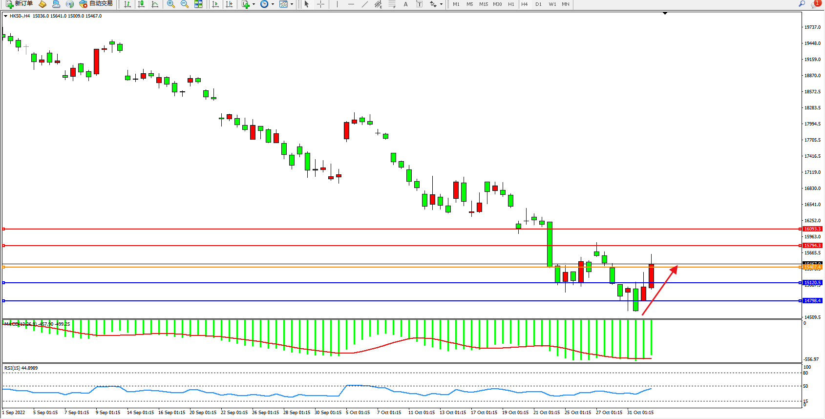恒指HK50 4小时图