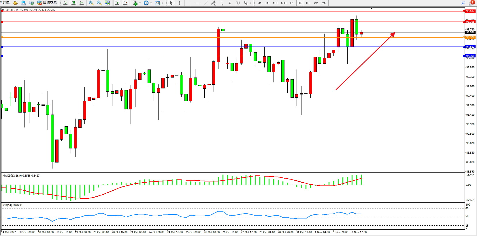 布油UKOil——4小时K线图显示: