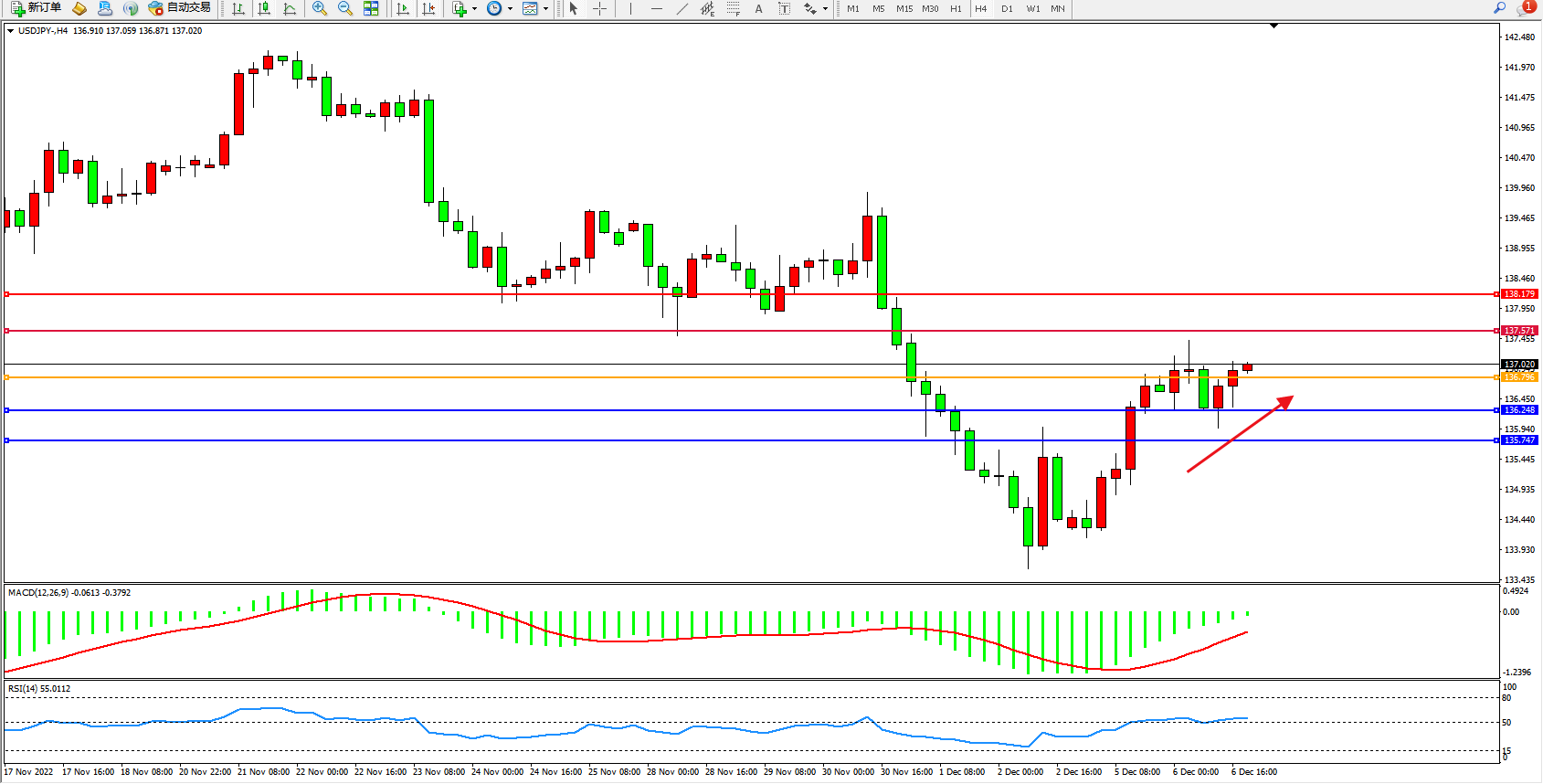 交易策略:138.796上方看涨,目标137.571、138.179