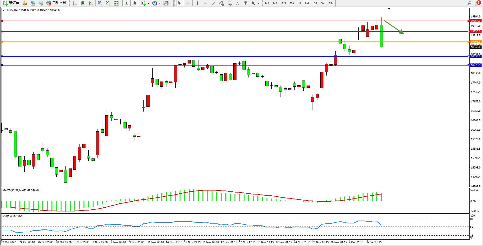 恒指HK50 4小时图