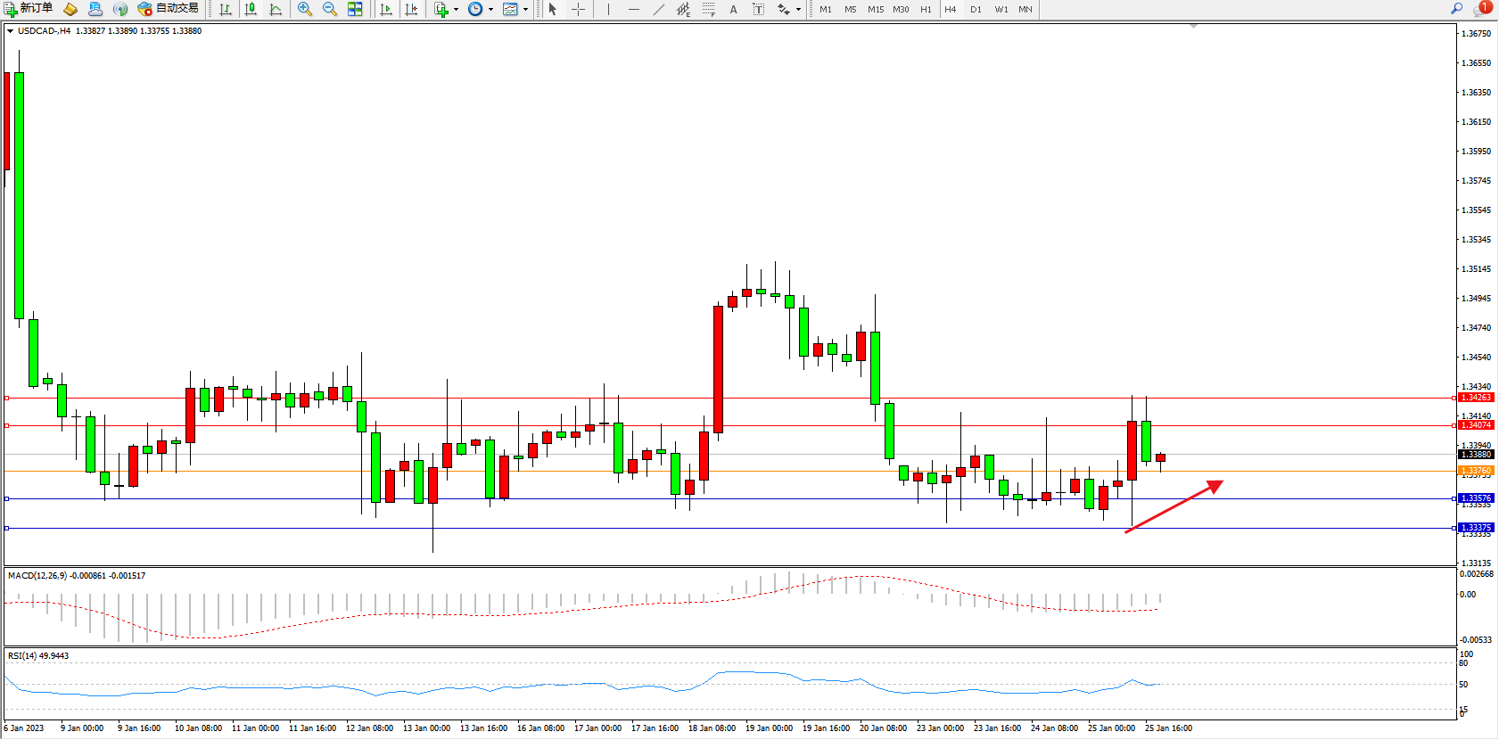 美元加元USDCAD——4小时K线图显示:
