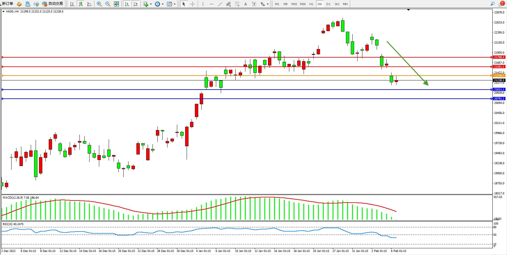 香港恒生指数2月6日(周一)收盘下跌438.31点,跌幅2.02%,报21222.16点;港股三大指数全天维持跌势,市场情绪普遍低迷。截止收盘,恒指跌2.02%下挫438点,并录得3连跌行情,恒生科技指数一度跌至4.3%,最终下跌3.65%,指数连续回撤。香港金管局总裁余伟文今日表示,联汇制度依靠大量美元支持,现时香港外汇储备较基础货币多1.7倍,所有基础货币均有美元支持,市场对外汇储备的信心很强。