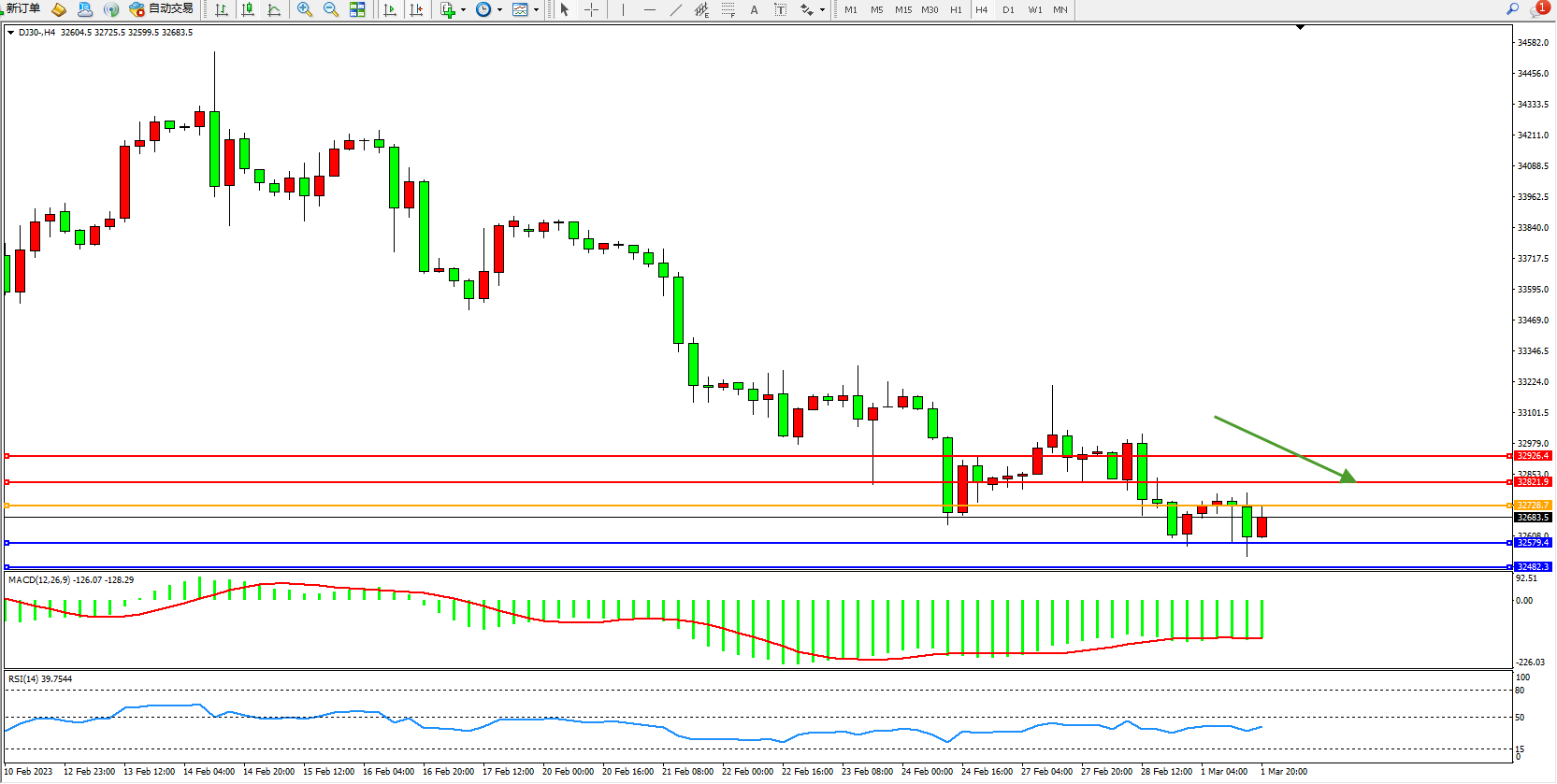 道琼斯指数3月1日(周三)收盘上涨5.86点,涨幅0.02%,报32662.56点;美国2月ISM制造业物价支付指数录得51.3,优于预期,美国中短期国债收益率承压,并使30年期和5年期国债收益率息差进一步趋平。