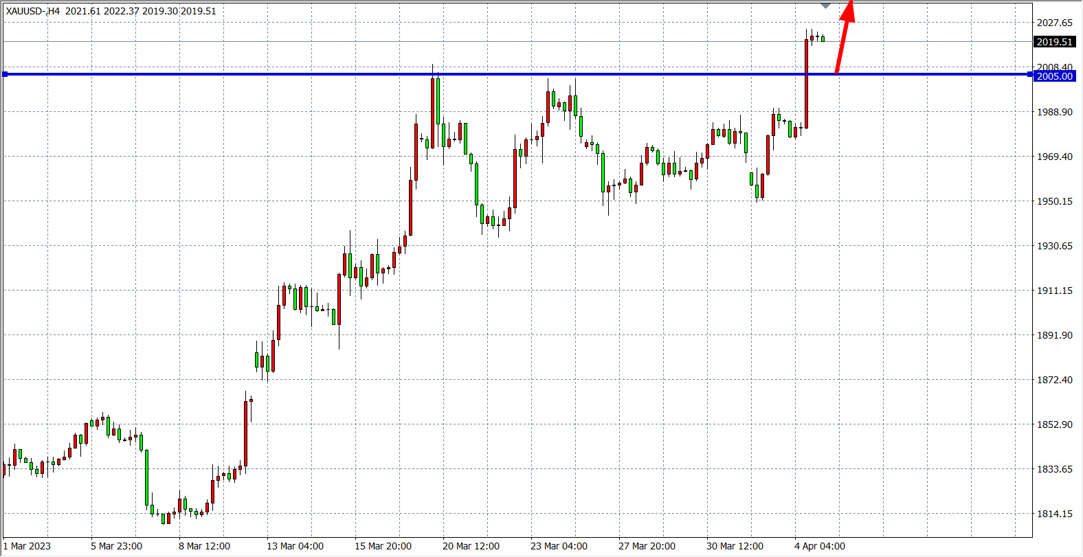 现货黄金XAUUSD 四小时图