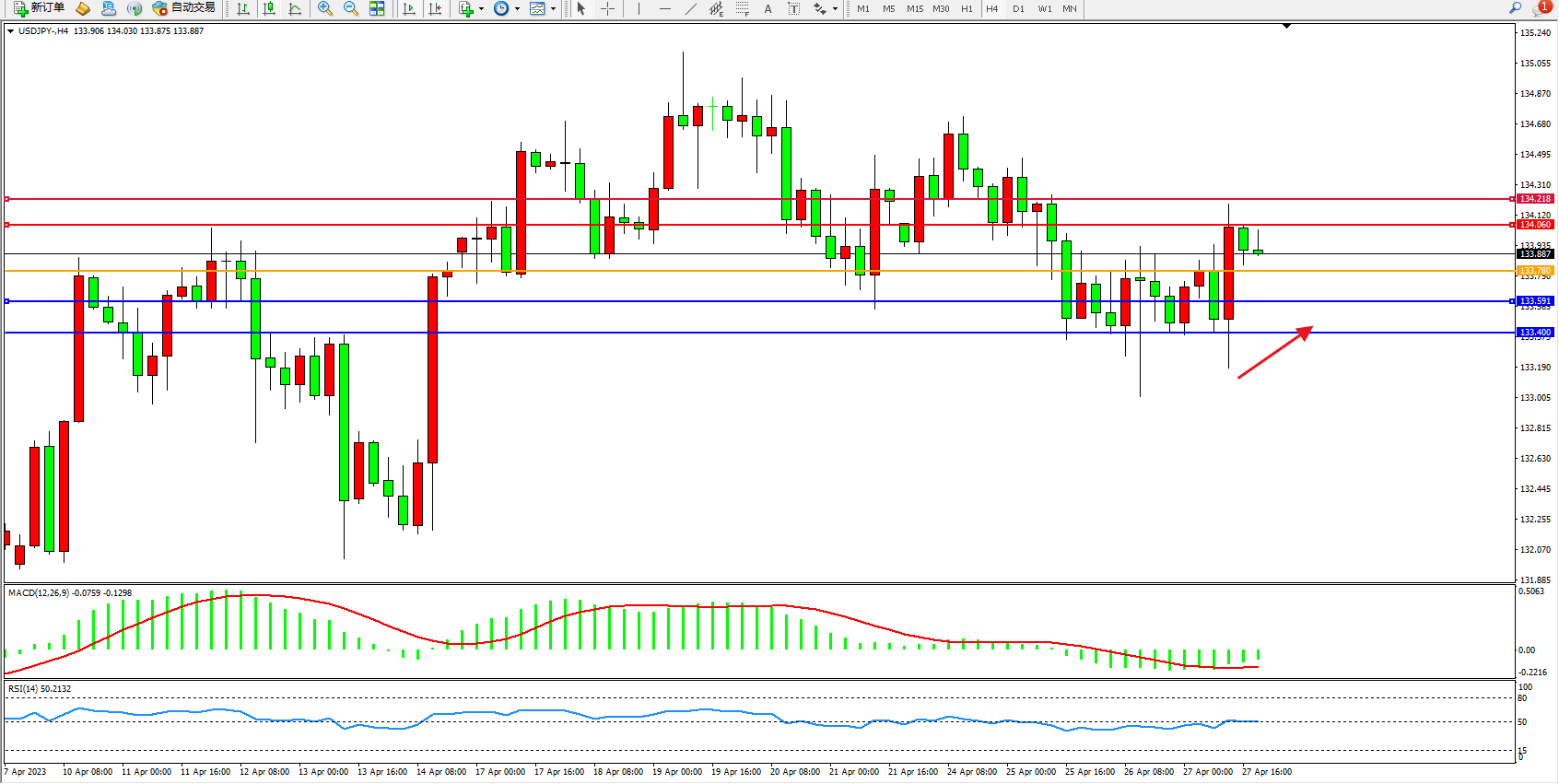 美元兑日圆维持133.887附近震荡,日本央行新行长植田和男表明他不急于转变政策。本周的日本央行会议将于周五结束,这是在他执掌下的第一次央行会议。