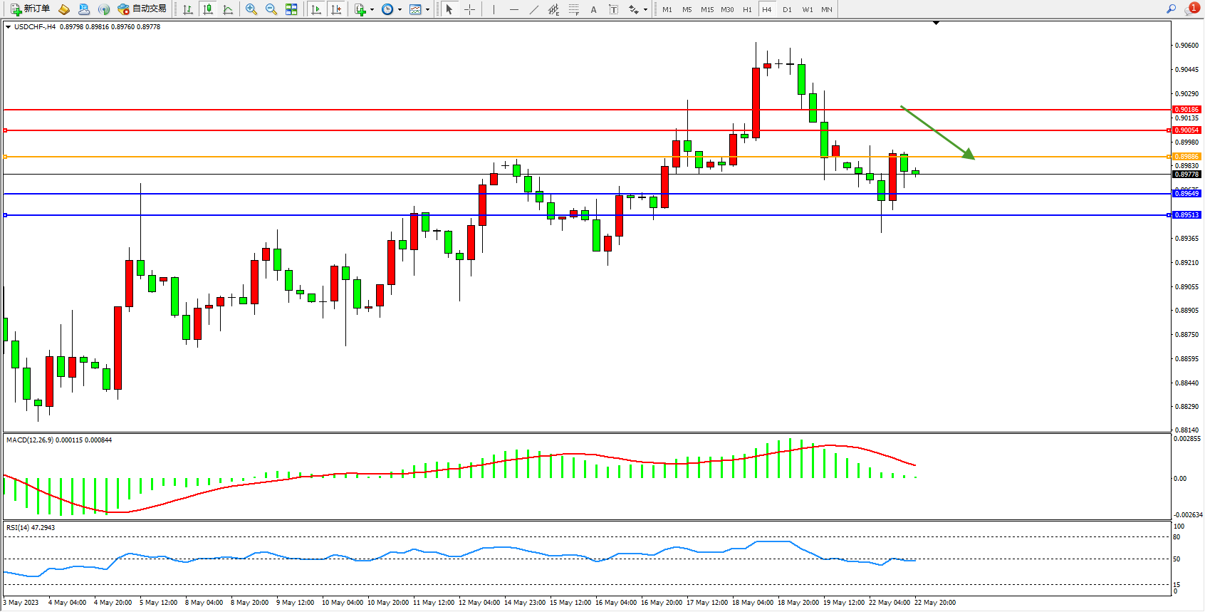 USDCHF:震荡下移 USDCHF  XAUUSD