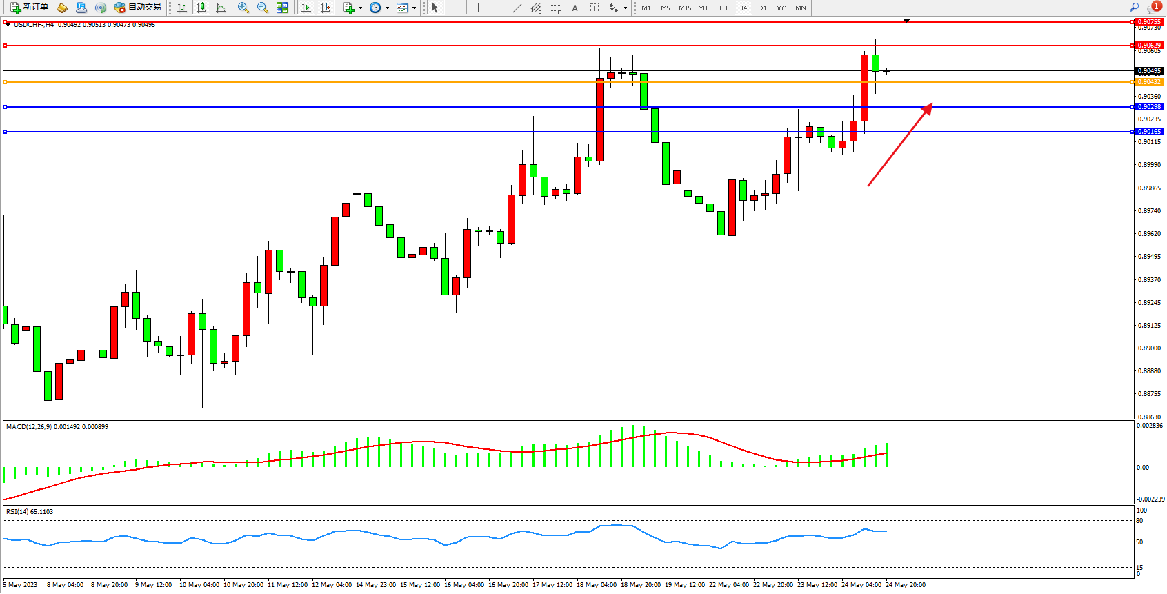 USDCHF:高位上扬