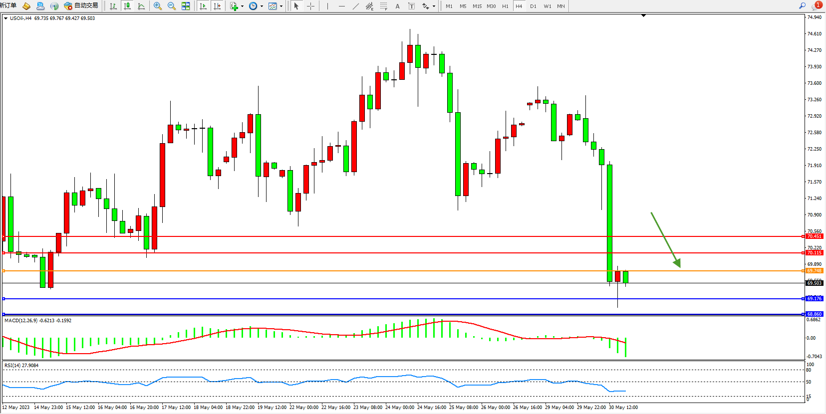 原油维持69.503附近震荡,俄罗斯副总理兼OPEC+主要谈判代表Alexander Novak最近保证,他不希望OPEC+在定于6月4日举行的下次会议上做出任何新决定,但这并不能让任何人放心。
