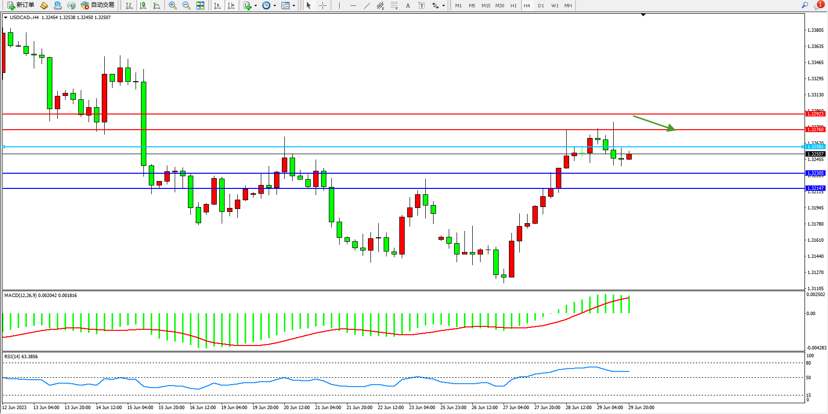 备选策略:1.32581上方看涨,目标1.32760  1.32923
