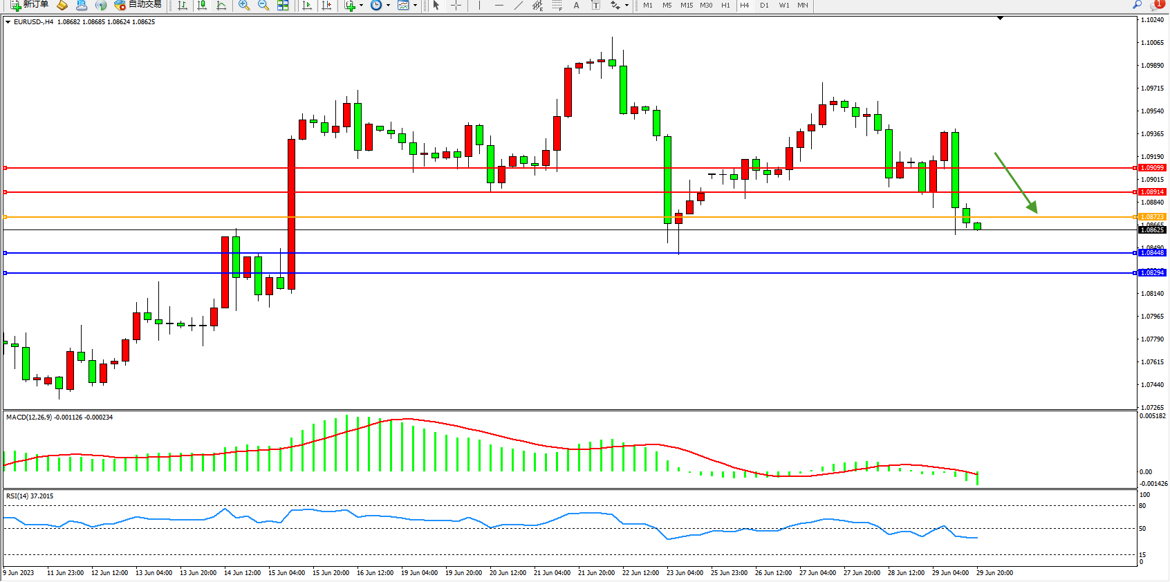交易策略:1.08723下方看跌,目标1.08448  1.08294
