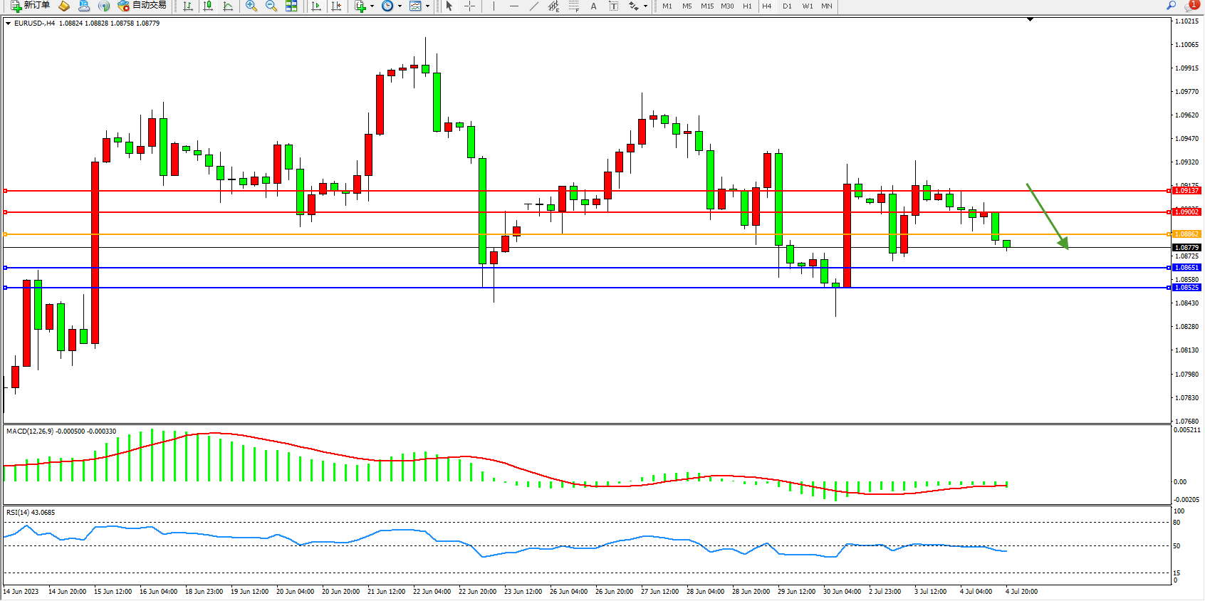 欧元兑美元维持1.08779附近震荡,欧美在接近两个月高位的位置进入新一周,但很快失去动能,如果美国经济数据导致美元再次走强,亚太货币走弱,欧元兑美元可能进一步回落至1.08或以下。