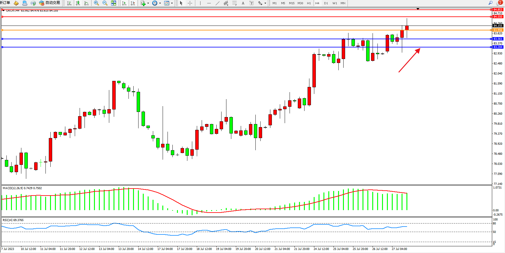 布油UKOil——4小时K线图显示: