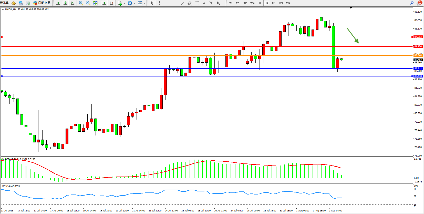 布油UKOil——4小时K线图显示: