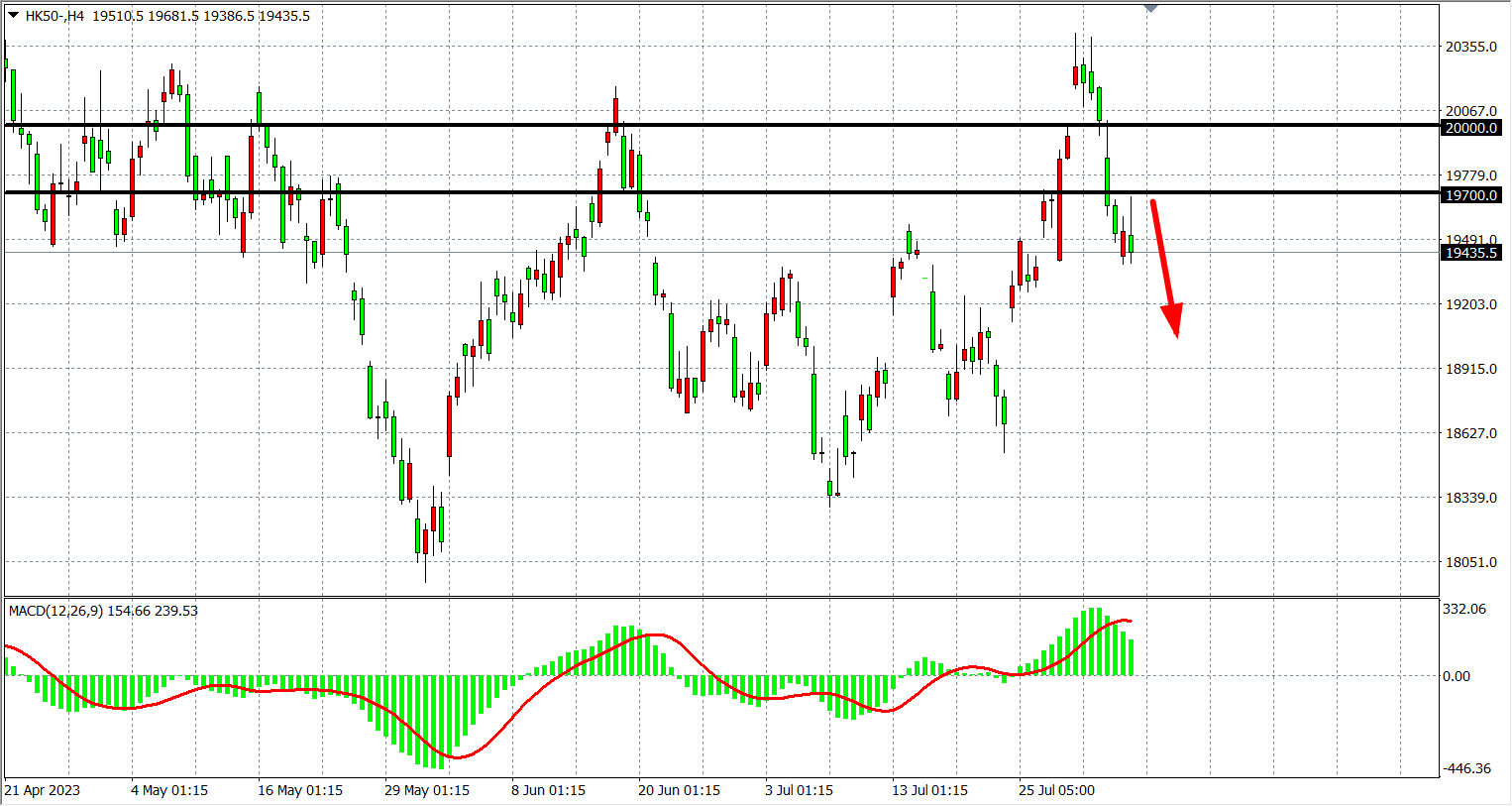 交易策略:19700 下方看跌,目标 19200 18900