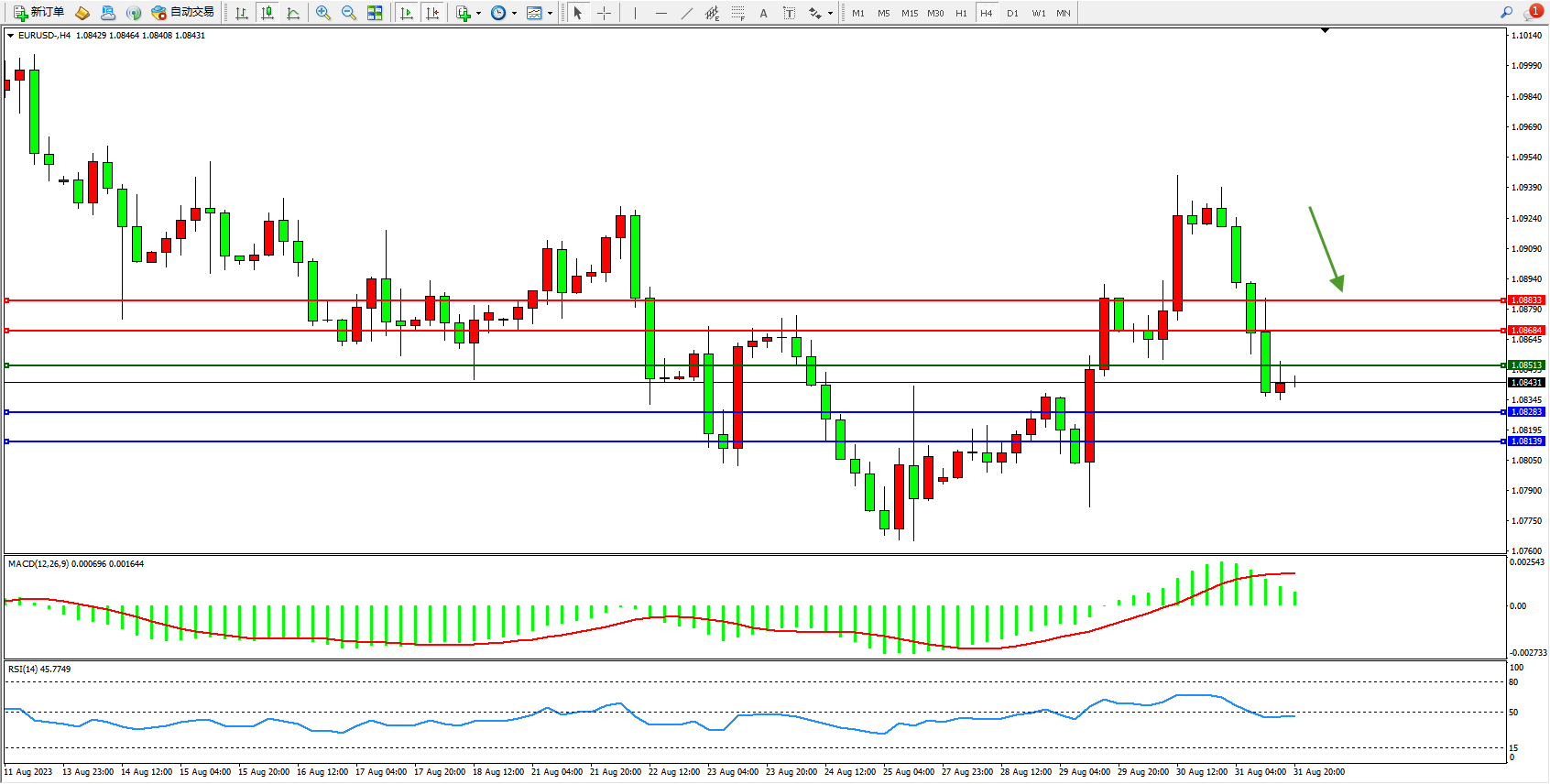 欧元兑美元维持1.08431附近震荡,欧洲央行执委施纳贝尔:潜在的物价压力仍然高企。经济活动已明显放缓。经济增速展望比6月预期的要弱。