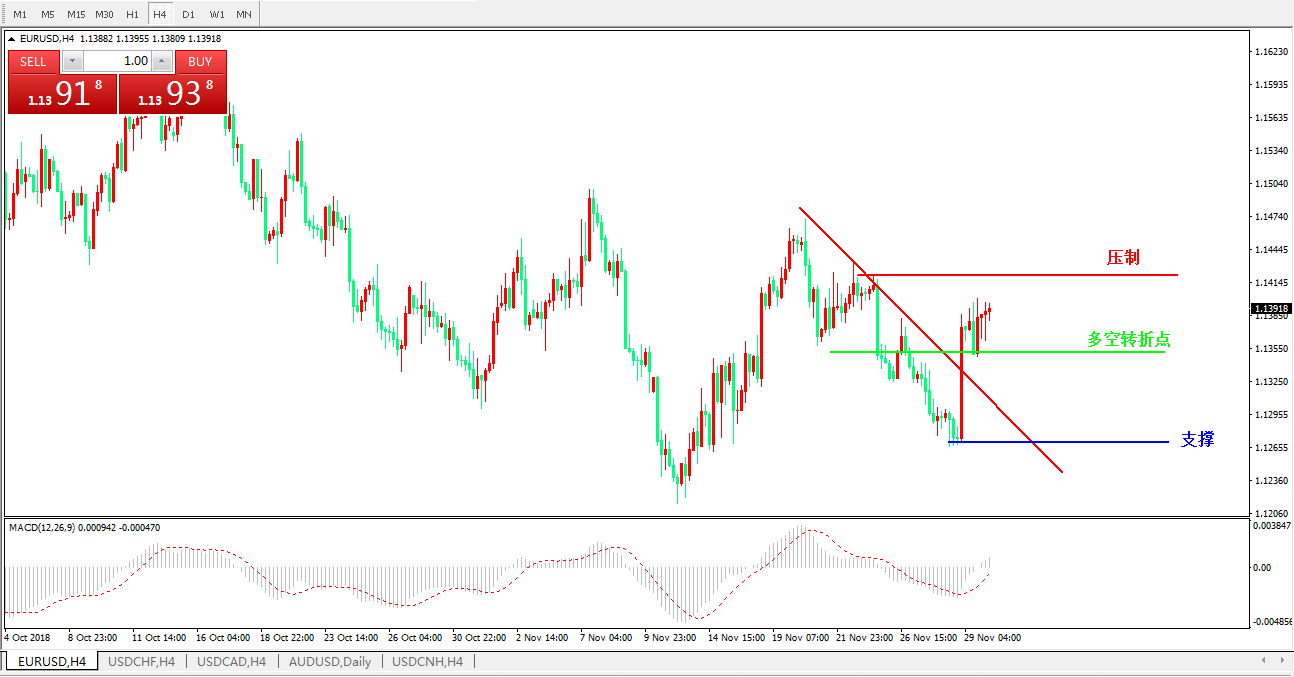 基本面简析:西班牙央行行长:欧元区经济放缓程度大于预期美国经济数据喜忧参半,同时美联储公布11月会议纪要显示,美联储讨论了调整进一步逐步加息的措辞,认为有理由相当近期进行加息。