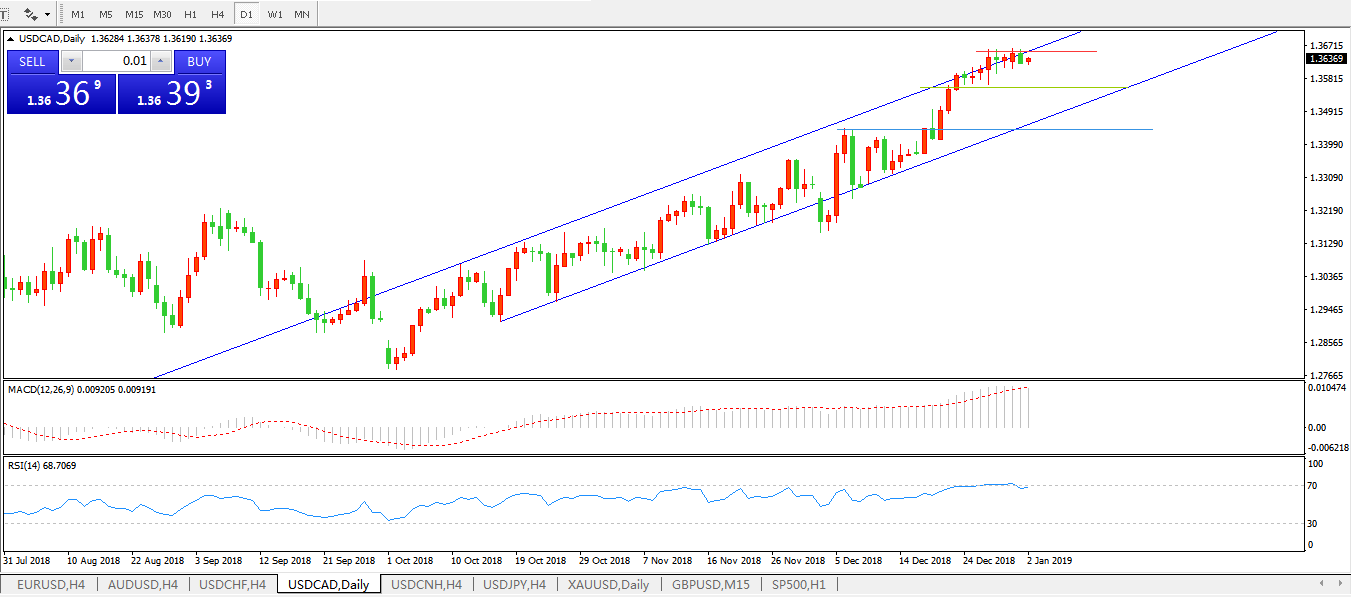 美元兑加元USDCAD 日线图