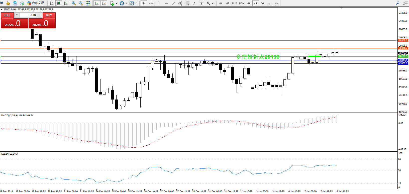 日经指数JPN225——4小时K线图: