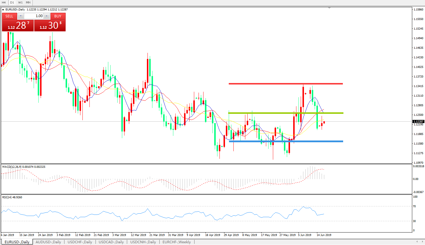 交易策略:1.1250下方看跌,目标1.1160、1.1100