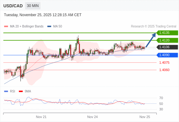 在 1.4090 之上,看涨,目标价位为 1.4120 ,然后为 1.4135 。
