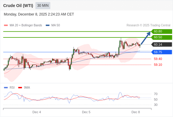 在 59.75 之上,看涨,目标价位为 60.50 ,然后为 60.80 。