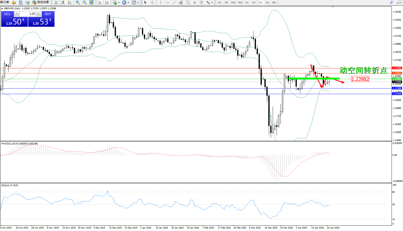 交易策略:1.23982下方看跌,目标1.22388、1.21448