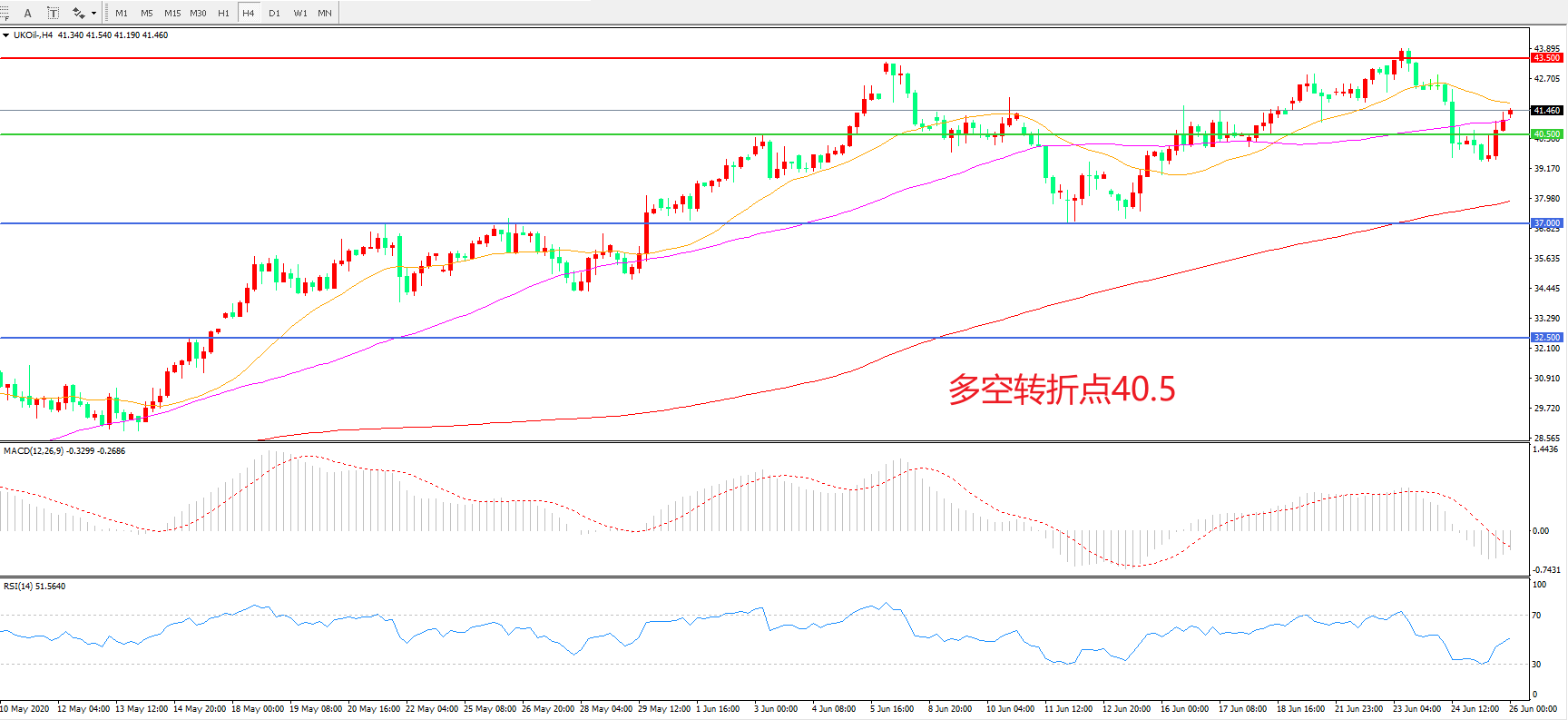 4小时图看,油价震荡回升,短期跌势有所缓解,均线系统走平,MACD绿柱缩短,RSI指标走平,日内延续震荡概率较大。