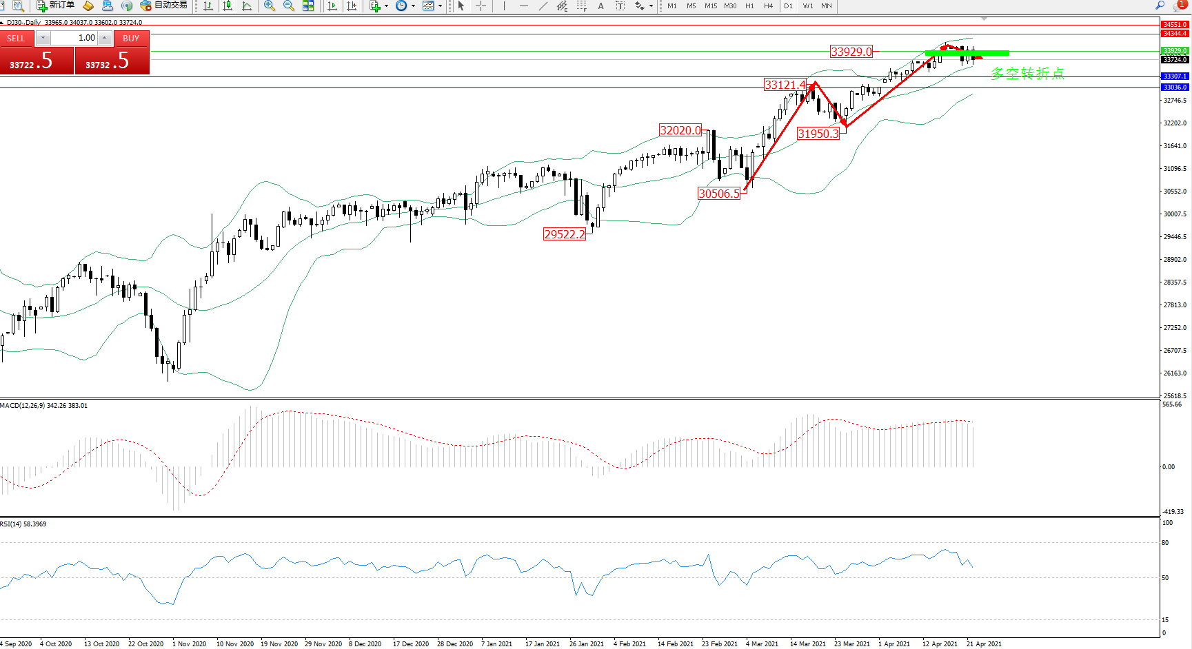 技术点评:多头动力延续布林带指标通道中上轨区间持续震荡上扬,高位屡破新高后遇阻回撤,即将触及布林带指标中轨附近节点,空头动力或将司机入场,布林带指标呈上行趋势走势良好,高位有短暂收口迹象,MACD指标处于多头区域维持整理平移,RSI指标处于多头区域维持震荡后开始反转下移中;
