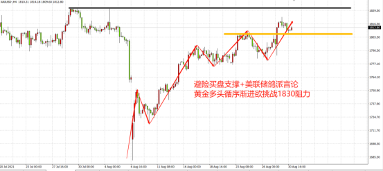 结合此前鲍威尔以及一众美联储官员的表态,多次提到加息的通胀标准尚未达到,即使开始缩债也不会马上进行货币宽松,对于黄金而言也就意味着未来仍有较弹性的上行空间。