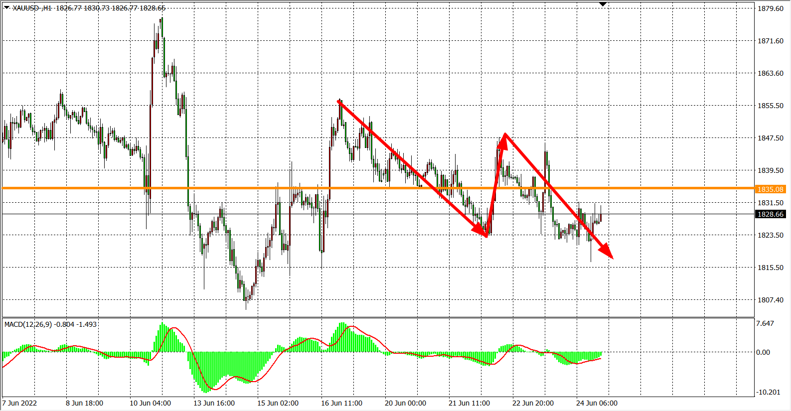交易策略:在1835.00之下看跌,目标1815.00 1800.00