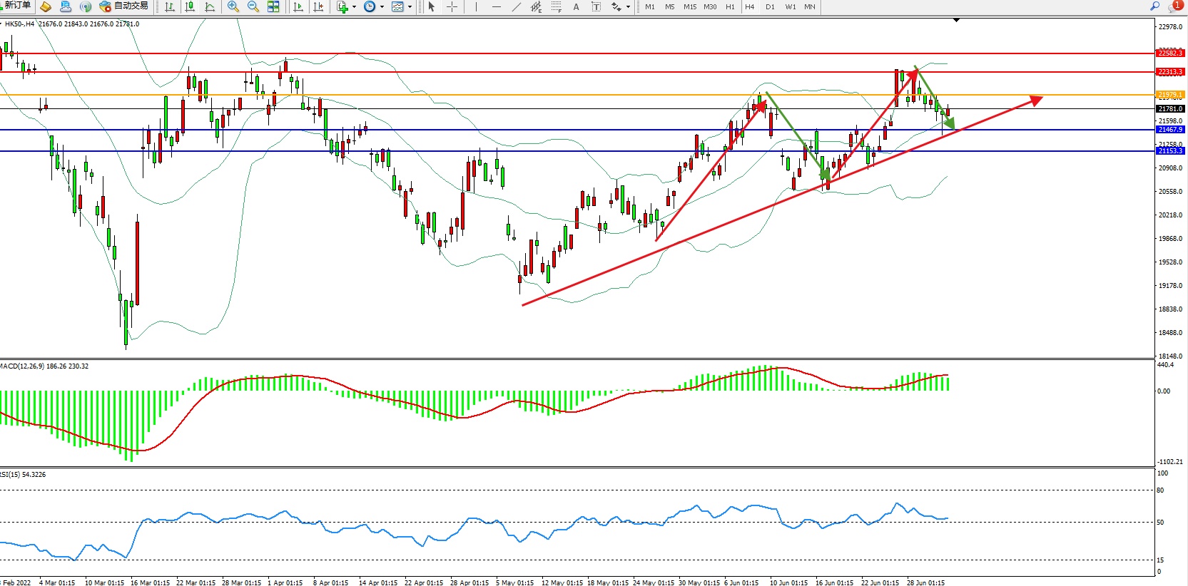 恒指HK50 4小时图