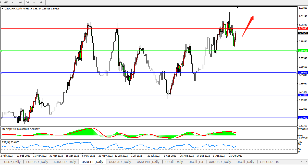 交易策略:0.9800上方看涨,目标1.0000,1.0200