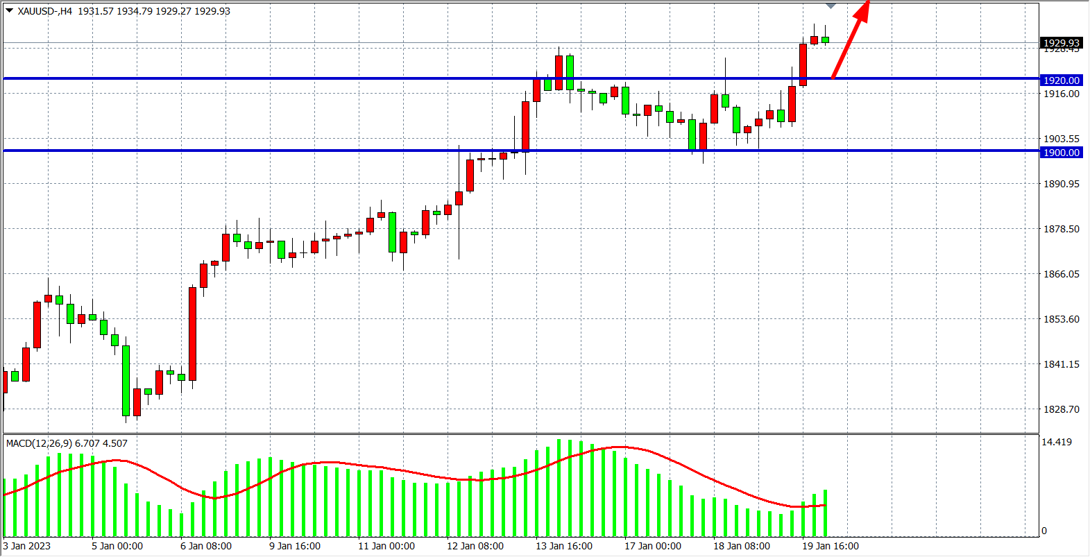交易策略:在1920.00 之上看涨,目标1930.00         1950.00