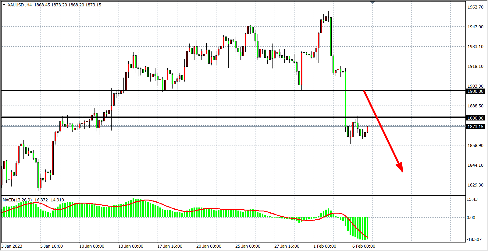 交易策略:在1900.00 之下看跌,目标1860.00 1840.00