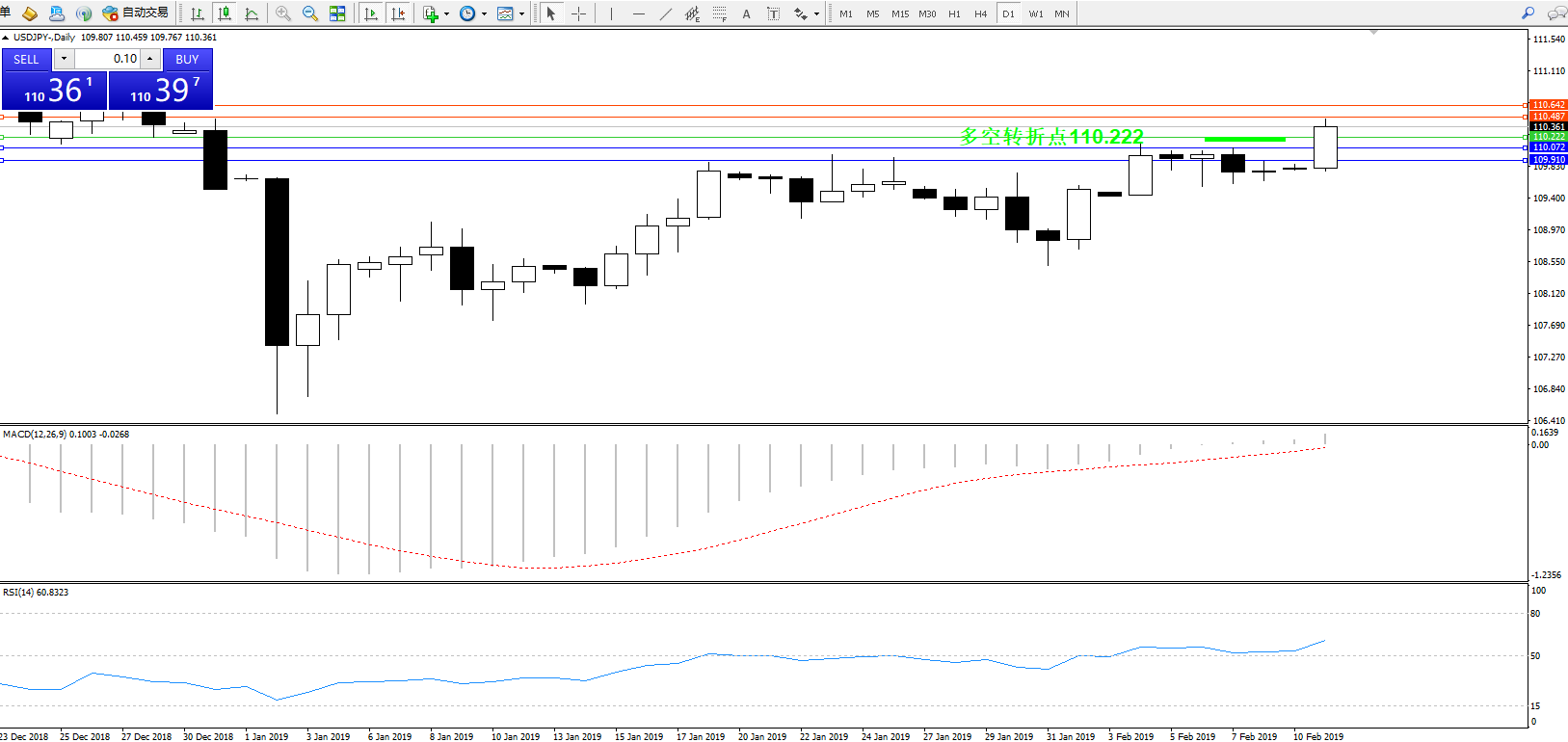 /日站上110关口,创六周新高!受益于美元升值,但多头恐仍受制于一大牵绊。美元兑人民币离岸价升破6.80关口,为124日以来首现,助力美元兑纽元和澳元收复部分跌幅。此外美债收益率的上行也支撑美元,截至发稿,美国10年期国债收益率上涨1.8个基点至2.652%。本周中美贸易谈判将持续左右风险资产,当前市场仍对此持乐观预期,欧洲股市及美股期货均上行。美国财长和贸易代表率领的庞大团队周一将来华继续谈判,需密切关注。